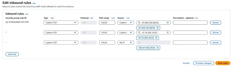 .This IP will be allowed to access port 17610 on your serverhttp://<Your-Server-IP>:17610